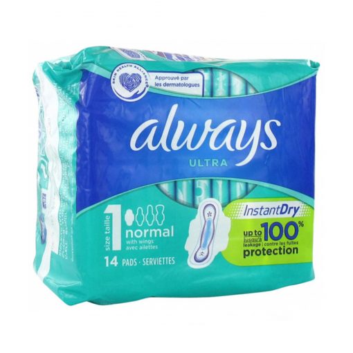 Always Ultra Normal with Fins Size 1 14 Sanitary Napkins,16 Pack/Case