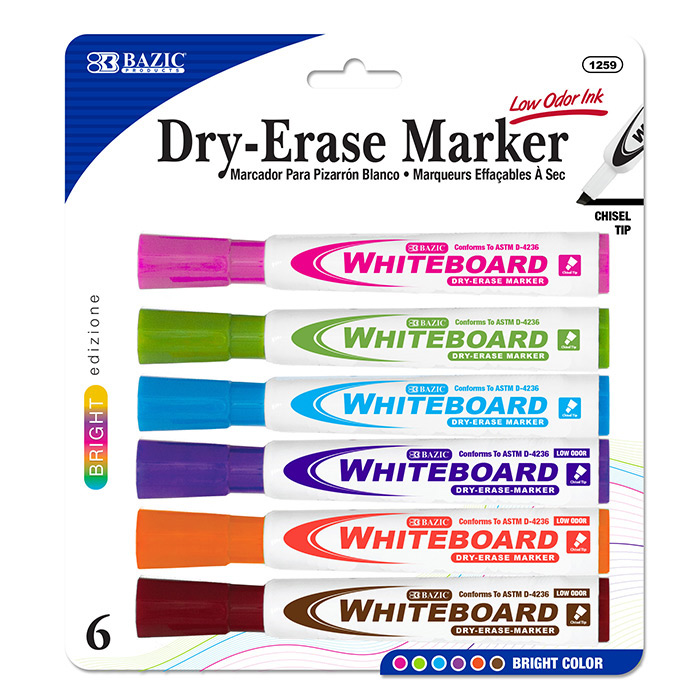 BAZIC Bright Colors Chisel Tip Dry-Erase Markers (6/Pack)